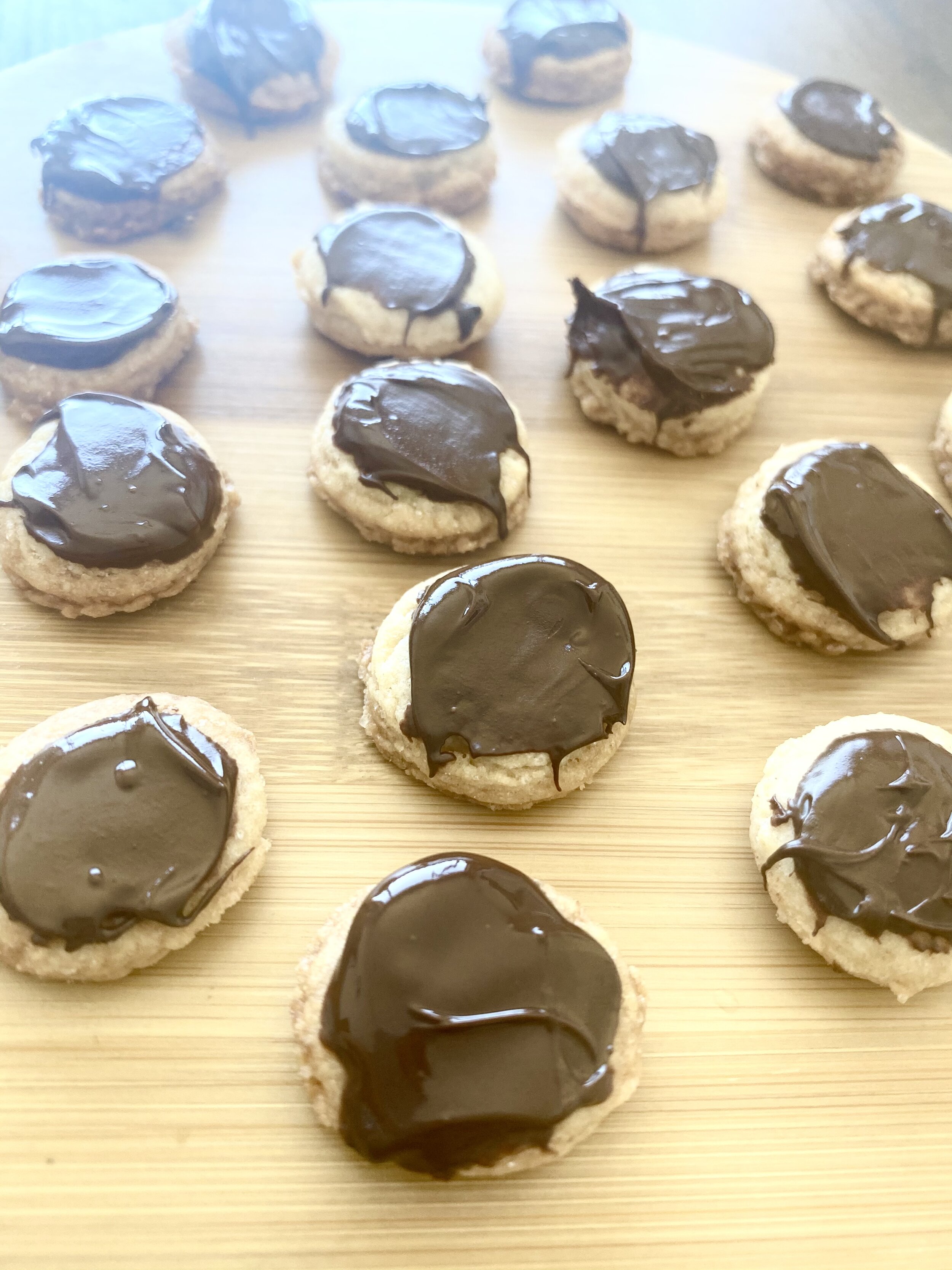 Mientras las galletas se enfrían, derrite el chocolate úntala a la parte de arriba de cada galleta.